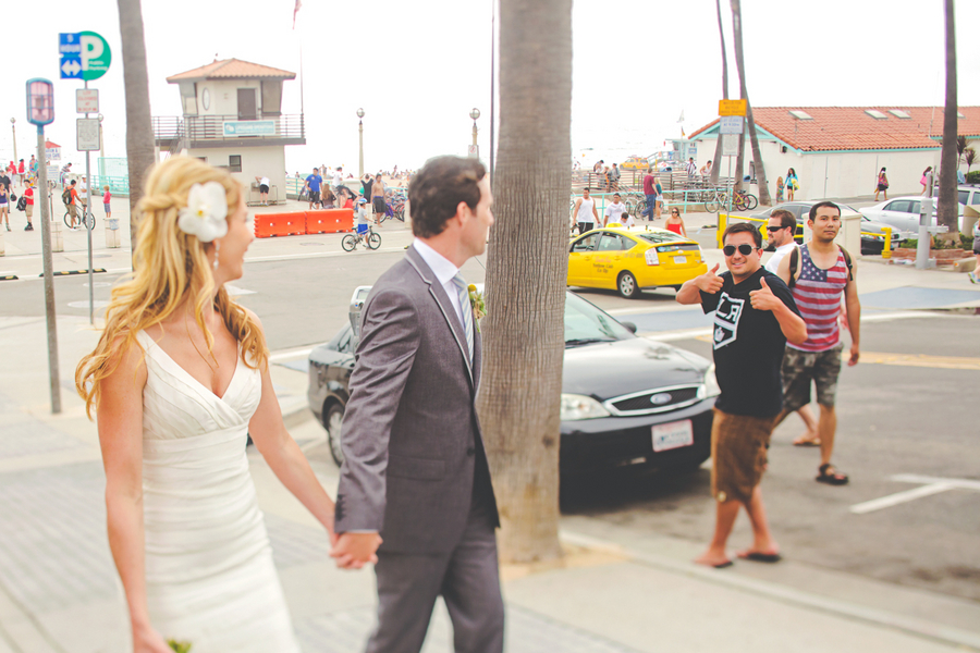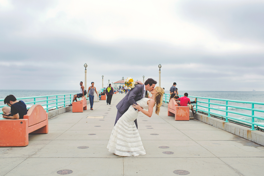 This wedding really caught my eye. After putting my vision together and stressing out about all the small details, I have realized that a simple Manhattan Beach wedding is probably the way to go! I love how Lindsey Gomes Photography captured some great photos of this couple around Manhattan Beach and even drew some attention with the locals and tourist.I think the hardest thing to do after you have put your wedding vision together is to hand those plans over to your wedding planner, whether that is a professional or friend. It is not easy to let go of the reigns and entrust someone else with making sure your wedding day is just right.I put my final “vision” together in a word document last night for my good friend and Chief Organizer Extraordinaire. The vision was a whopping 21 page document of wedding decorating dauntingness. She, along with a team of friends, will be in charge of decorating that day. For a control party-planning-freak like myself, it is hard not to be physically involved that day and have my actual stamp on it.