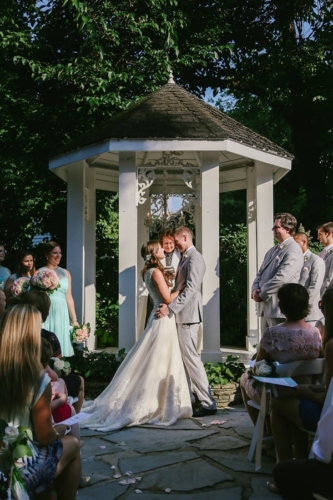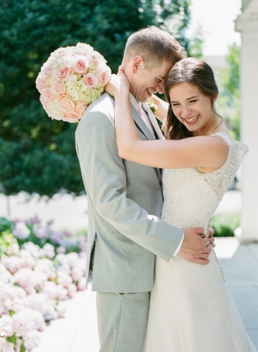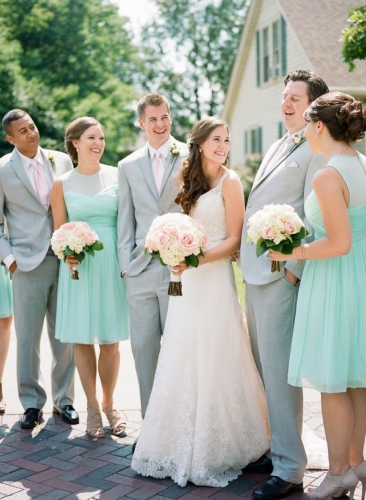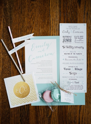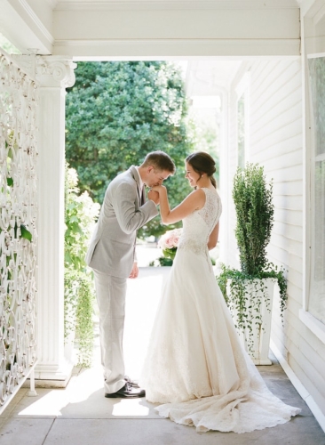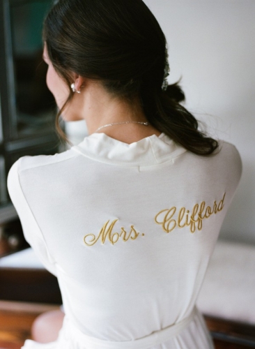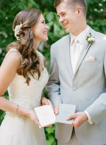 Photographer’s Comments: “These sweet lovebirds said ‘I Do’ in classic southern style for their outdoor summer wedding in . A color palette of aqua, blush, and creme with gold accents created a chic and sweet design for their summer garden wedding. “The couple chose lots of personal details to celebrate their day, including signature cocktails and embroidered bridal robes, but our favorite were the his & hers vow books! “They shed happy tears as they read each other their promises of love privately before the ceremony. Such a sweet moment and an absolutely beautiful day for Emily + Cam.”