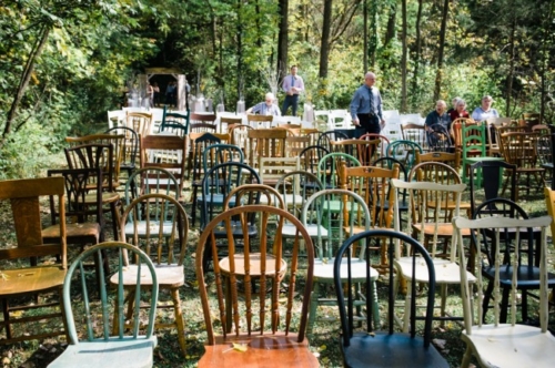 From the rustic wedding ceremony seating to the bridesmaids’ attire, everything in this wedding is mismatched. And you know what, it totally works! The mismatched seating both during the ceremony and reception give this wedding unique charm and character that one will remember. The bride didn’t even need to worry about aisle decor because the whole seating area speaks for itself.