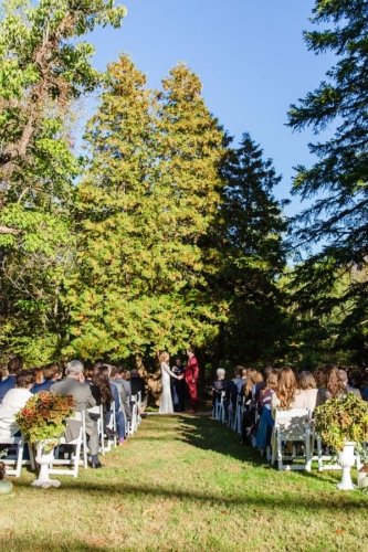 A7: For Chris the most anticipated or special moment was our exchanging of our vows. We worked together to make the ceremony unique to ourselves and each wrote our own vows. It was so special to hear what each of us had written to each other. For Emily the whole experience is to be relived over and over. Nothing went wrong that mattered. Our loved ones, our friends, our vendors, each other – everyone showed up to witness and celebrate our union as one family. I remember stopping the ceremony to just take a minute to drink it all in – the sunshine, the faces, my handsome groom, and the leaves waving. Chris outdid me in his vows for sure! they were equally hilarious and thoughtful.