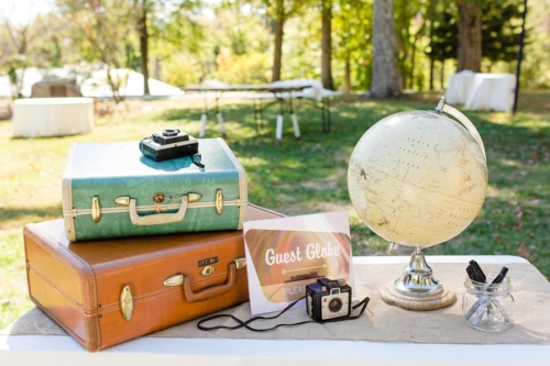 A2: we knew we wanted to use the natural venue setting as the backdrop. we wanted to incorporate our personalities and our love of travel and national parks and the outdoors into the decor. The main theme was national parks! The groom designed beautiful crafty signs that all incorporated the national park logo including “find your seat, find your park” for guests to pick up their branch picture frames aka table cards and favors to go to their tables. we also had “but first, bubbles” for the welcome champagne and “we love you s’mores” for our campfire-esque s’more station during the reception and “you mean the world to us” for guests to sign a globe we purchased at a national park gift shop, instead of a guest book.