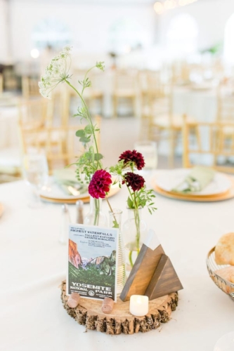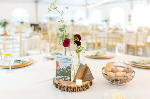 A1: Our wedding was inspired by our love of nature, national parks, and the notion that the entire weekend was about the joining of our two halves as one. We wanted our friends and family to be able to spend multiple days getting to know each other and have as much opportunity to spend time with everyone along the way. the quotes on our programs, the readings during the ceremony, and the songs during the reception were all personalized and chosen to represent love, community, and fun. it was important that the wedding weekend be as eco friendly as possible, including no single-use plastic at the wedding, online save the date and invitations, all-vegetarian menu, asking people to carpool to events, and saving food after each event.