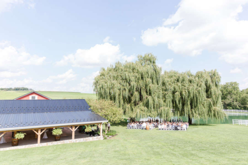 Photographer’s Comments: “John and Emily are married!! There was a lot of sweet anticipation leading up to this day. These two were so excited to become husband and wife and now they are officially Mr. and Mrs. Winkler! John and Emily tied the knot under the weeping willow trees on a beautiful summer day at Pond View Farm. There were many tears of happiness in the crowd as John and Emily shared their vows! It was a wonderful celebration. “One of the most special parts of this day was that Emily’s cousin Kate and her husband Tim were married on this same day 11 years ago. How fun that they now share an Anniversary?! It was adorable to watch Kate and Tim’s kids walk down the aisle and celebrate with John and Emily.” Here is their love story from Emily’s perspective! John and I were about a year in the making. Shortly after starting my new job, my boss who knew I was single mentioned her son had a “nice” friend. Sure, it peaked my interest but I have dated and searched high and low for my prince charming and in Baltimore no guy is ever just “nice”. I politely declined, unsure if it was good to mix business with pleasure and went on about my way! But for some reason he always stayed in the back of my mind, and I always wondered if she would bring him up to me again, perhaps at a time I would finally agree to go out! I really never heard about him again for months until he was helping out at said boss’ sons house. He was still “nice” John who was single, had his own home, and a wonderful job. Bonus points for being a huge Orioles and Ravens fan! I was once again in her office complaining about the dating scene in Baltimore. It was at this point my boss said that was it. She was giving John my number. John texted me on Valentines day for the first time. Even wished me a Happy Valentines Day which I was super thoughtful, and bold! We went out that Saturday and it was just one of those when you know, you know moments. We had an awesome first date talking all night. And we couldn’t wait to see each other again. I think i knew right away he was the one, but after he met my mom and saw how much she adored him too, that sealed the deal I was smitten. And the proposal! Well apparently John had the ring in our house for 3 weeks!! We had discussed a timeline somewhat (I am in grad school so trying to balance both wedding and school seemed a little difficult so wanted to plan ….and lets be real I am 100% a total planner and control freak), so I kind of knew it was coming but when and how exactly totally was up to John! My birthday came and went and so came Friday night dinner just the two of us. Again, no ring. By 4:00 pm Saturday I had it in my head it really wasn’t happening that weekend, John was just acting way too normal and calm. Off we went to meet up with my family at McFauls for my birthday dinner, a place we always go. We got out at the valet and as I headed to the side entrance, THAT WE ALWAYS GO IN… Johns arm was directing me towards the front entrance. To which I was saying no, no we go in the side! (control freak again). I then looked over and noticed the McFauls sign was lit up and by the lights were two champagne glasses and a bottle of champagne. At this point it is all a bit of a blur, and lots of happy tears, but John got down on one knee and asked “Will you marry me” with the biggest smile on his face. I am pretty sure I said yes! As we hugged, our families both came out to greet us and hug us. I knew my family would be there but it was a total surprise his family would join too! After dinner as we made our way to the bar area, they had setup another surprise. All of my closest girlfriends and more of my family had joined to celebrate. Needless to say they left this control freak speechless and crying happy tears yet again. Definitely the best night of my life where I can firmly say all my dreams came true…and can only imagine how amazing our wedding will be!Gallery