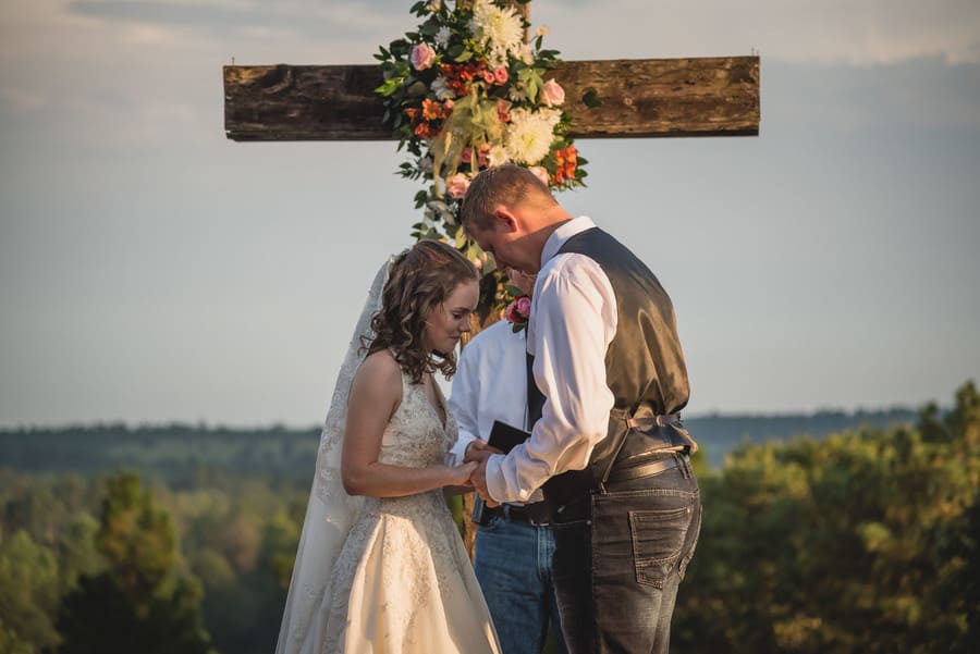 Photographer’s Comments: “Clint and Emma were married at Jacksons Landing. Their outdoor ceremony in front of a beautiful cross overlooking the hills of South Carolina almost didn’t happen. Minutes after finishing up photos of beautiful bride, Emma, the skies opened. Discussions of moving the ceremony to the barn began, unsure if the rain would let up enough for an outdoor ceremony. Emma decided we would hold off believing their prayers for a beautiful ceremony would be answered. Sure enough just minutes before the ceremony start, the skies cleared revealing the most beautiful rainbow.”Gallery