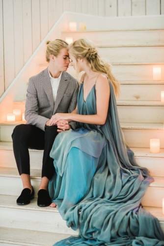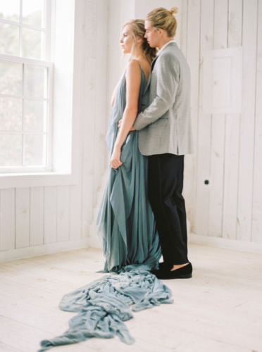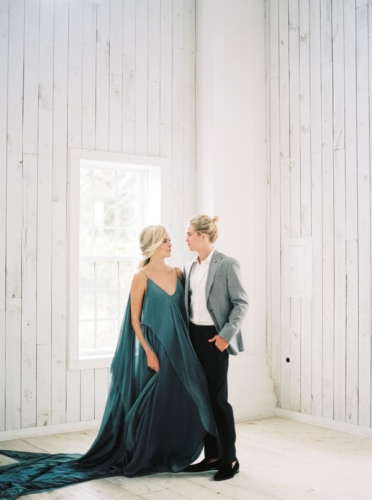 A lovely styled engagement session set at The White Sparrow Barn in Texas. Ethereal images of aqua hues contrast with the beautiful white washed walls of the barn venue. Enjoy!
