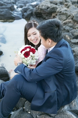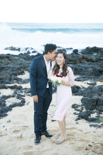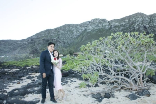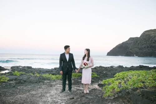 Photographer’s Comments: “This is a real engagement session at Oahu Makapu’u Beach. I love the colors of this session, it reminds me of a water color painting. The couple liked very posed photos but I was able to sneak in a few candids to satisfy a balanced perspective. “The bride-to-be Thao, wore high heels on the rocky edge of the cliff like a goddess and was full on climbing the lava rocks. They were both up for an adventure climbing rocks and dipping their toes in the tide pools. All while looking fabulous! “The sweetest moments of the session were Thao soon to be husband giving her a helping hand along the rocks and fixing her fly-away hairs as the wind blew.”Gallery