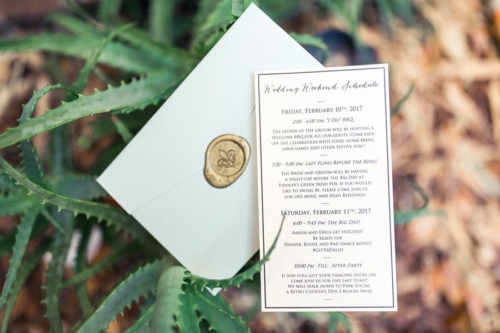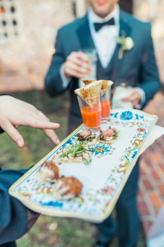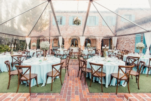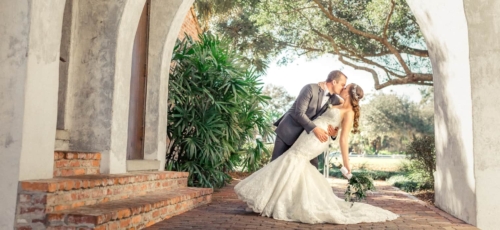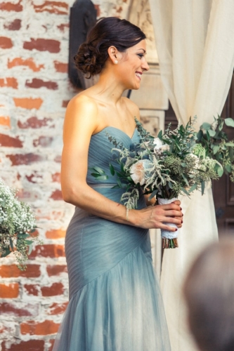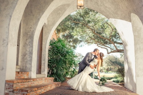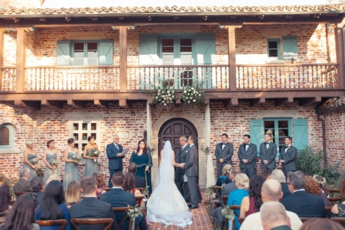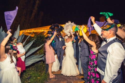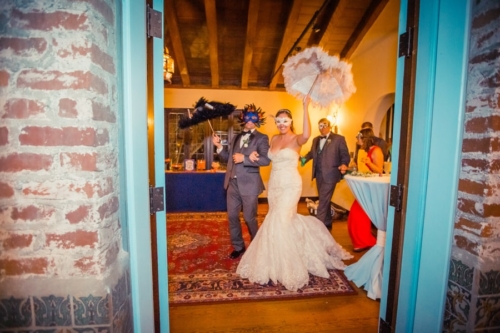 “These two light up around each other like nothing else. Colors sing for me, and I had this incredible moment of seeing Erica and her ladies, in their dreamy blue bridesmaids gowns and flowers- all the same blue that matched the shutters on the windows of the wall behind them, and contrasted so beautifully with the brick of absolute harmony. It made me cry to see something so beautiful. “Luckily Erica and her ladies were patient with me- standing there while I made a fool of myself! Hearing their heartfelt speeches to each other during their wedding vows- his was earnest, and hilariously frank, and hers was emotional, full of small observations and cosmic connection she felt- also made me tear up. “This time I wasn’t alone- joined by basically everyone else in the audience- from Aaron’s mom, to the young flower girl- all of us hanging on each word. I’m just happy I was able to keep clicking away, and capturing so much of this day. “After first meeting Erica & Aaron, and getting one of Erica’s mom’s famous hugs, I was excited about their wedding vision- ethereal, natural, with soft details surrounded by the lovely historic Spanish architecture of Casa Feliz, which reminded her of her New Orleans roots. “After their incredible sunrise engagement session at Cocoa Beach, I knew these two had found an incredible match in each other. Everything was a perfect reflection of these two- from getting ready at the Alfond Inn, to the flower filled, candlelit reception dinner in the courtyard, to the Mardi Gras inspired masquerade parade exit that spirited them off into the night! “This day was an absolute dream to photograph for me, and it would not have been possible without Erica sharing her wedding dream with our tribe of Winter Park wedding vendors.”Gallery