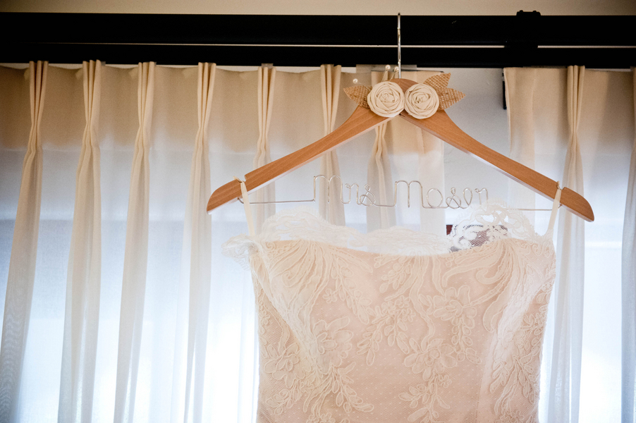 “Greg is quite a handy man, so we opted for custom wooden coasters as our gift/place card. It was great because we both made them together. He designed and manufactured the coasters, while I did the sanding and staining. To this day, I see our coasters out at friends and families homes and it makes me smile.”