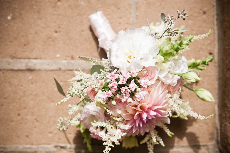 “We used dahlias, peonies and spray roses. The colors blended so well and I was so pleased with how they turned out.”