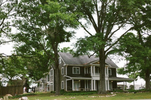 The Inn is a small family farm in Silver City, North Carolina. The Inn consists of two buildings: a modern Greek Revival farmhouse skirted by wide porches, and the original settler’s 1800 log cabin. It is set on a gentle knoll under 250 year old oak trees. The Inn specializes in farm weddings, retreats, and other special events.