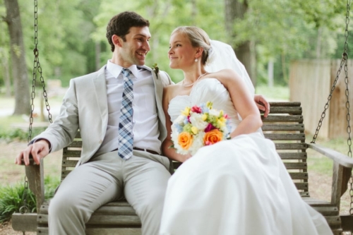 We really love today’s farm wedding. Erin and Jason are from Seattle, but got married in North Carolina, and had a DIY wedding. With help from their families (their dads brewed beer and family brought dessert) they put together a beautiful wedding that certainly looked like loads of fun. They are now on a FOUR month honeymoon in Europe — LUCKY DUCKS!