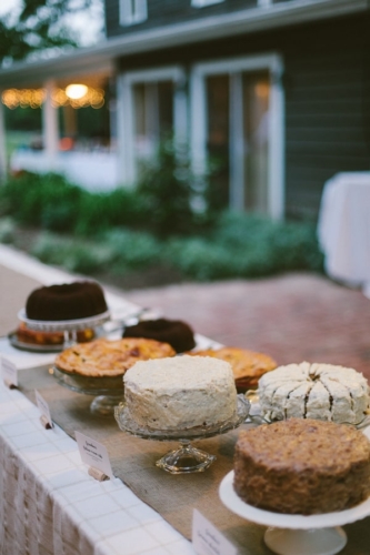 Since the Inn at Celebrity Dairy wedding venue is a working farm with lots of chickens, one would expect to find this lovely display of home-made cakes and pies at a farm wedding!