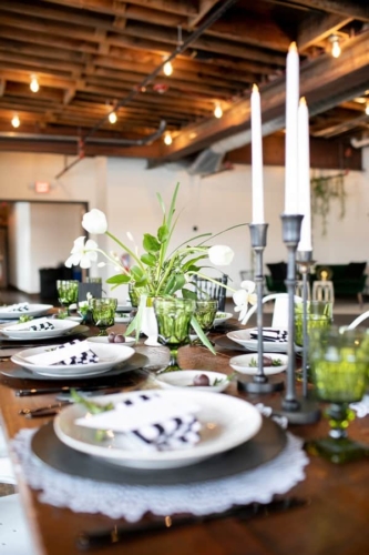 Photographer’s Comments: “Ethereal Confections is a coffee and chocolate shop locate right on the square in historic . They recently opened their event venue located on the second level of the building and it is the perfect space for corporate events, fun classes and intimate weddings! That’s where we come in! To help promote the space we put together a styled shoot inspired by the industrial feel of the space. Black, white and green were the springboard to our design. And from there the ideas took off! See for yourself.”Gallery