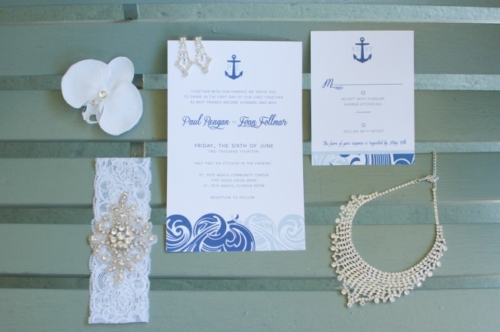 I have always been fond of the nautical themed wedding look. Â Whether it is during fleet week in New York were are the navy sailors line the deck all in white or the memory of my mom dressing me up in a sailor suit at the age of two for a fashion show on a cruise ship. Â Okay, I don’t remember that, but I have photo evidence and it was pretty darn cute.