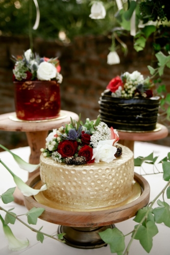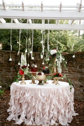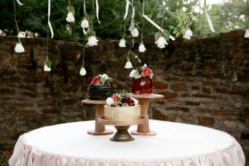 Gorgeous florals steal the show at this styled barn wedding in Arkansas. While hanging white roses tempt us to take a bite of the three divine cakes below…