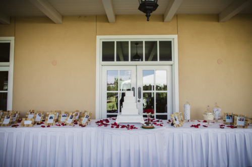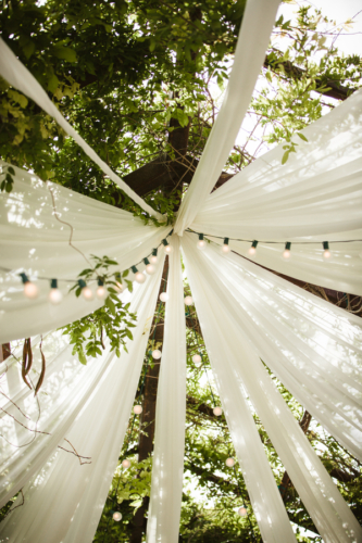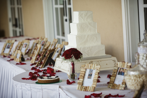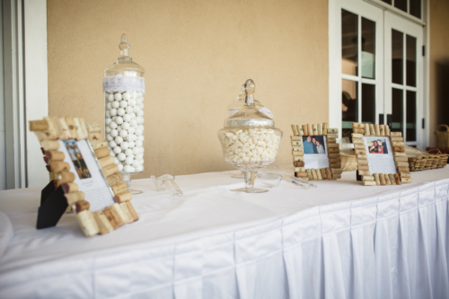 “We did a candy bar in place of favors. All white candy including: gummy bears, gum balls, licorice, chocolate.”