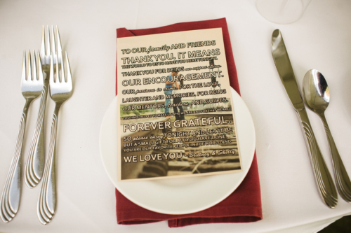 - Brittney designed a card that had an engagement picture as the background and a thank you note on it and these were placed at each place setting.