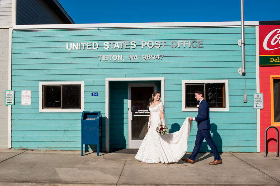 Photographer’s Comments: “Braden and Halley’s wedding took place on the last beautiful fall day in October. Their wedding was extra special for me because Braden is my younger brother, and the baby of the family. He and Halley have been dating since high school; for nearly seven years! “Halley was going for a fall vintage rustic vibe and nailed it. Pumpkins and candles were accented with burgundy flowers throughout the Mighty Tieton, and the string lights across the reception were the perfect finishing touch. “They had the sweetest first look and we had a blast wandering through the town of Tieton for their portraits. Besides when Braden was caught playing Super Smash Bros in a backroom with the groomsmen, the most “like them” moment of the day was when I noticed their long-time friend and honorable third wheel of the relationship, Jordan, pulling up a chair to the bride and groom table to resume his position at their side. Jordan let them be for the rest of the reception, not intruding on the cake cutting or first dances, but did help to make an excellent toast. “Finally, the sparkler exit! It was beautiful, and just as Braden and Halley hopped into their car to make a getaway, Jordan popped up in the backseat! Someone in the crowd shouted, “Jordan’s in the car!”. Howls of laughter later, and with Jordan retreating from the car, the night finally ended.”About This Wedding