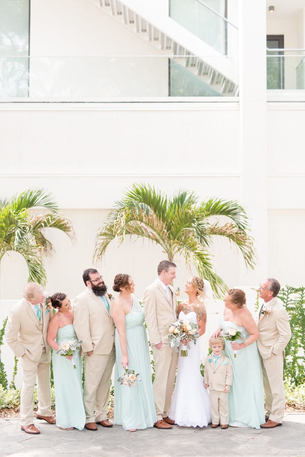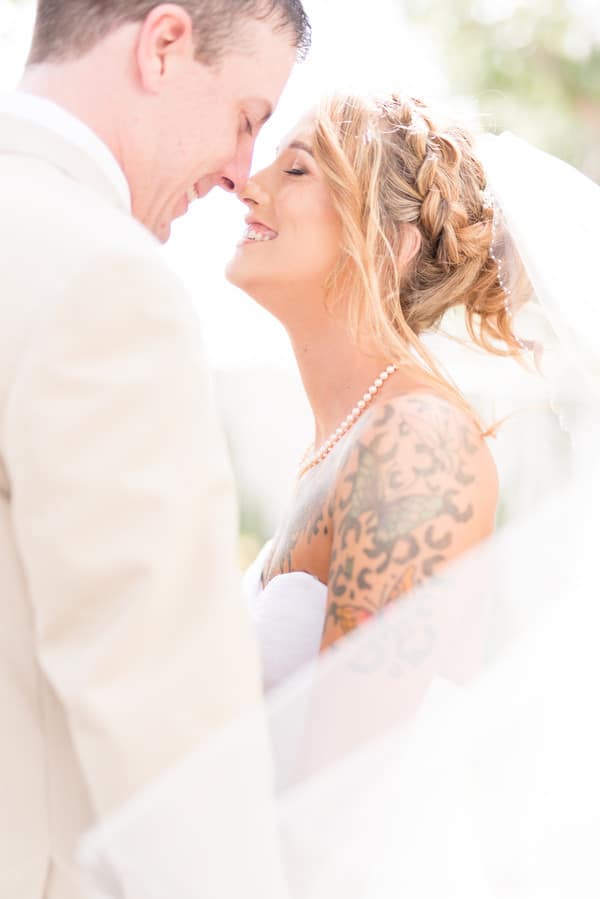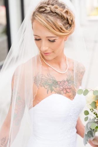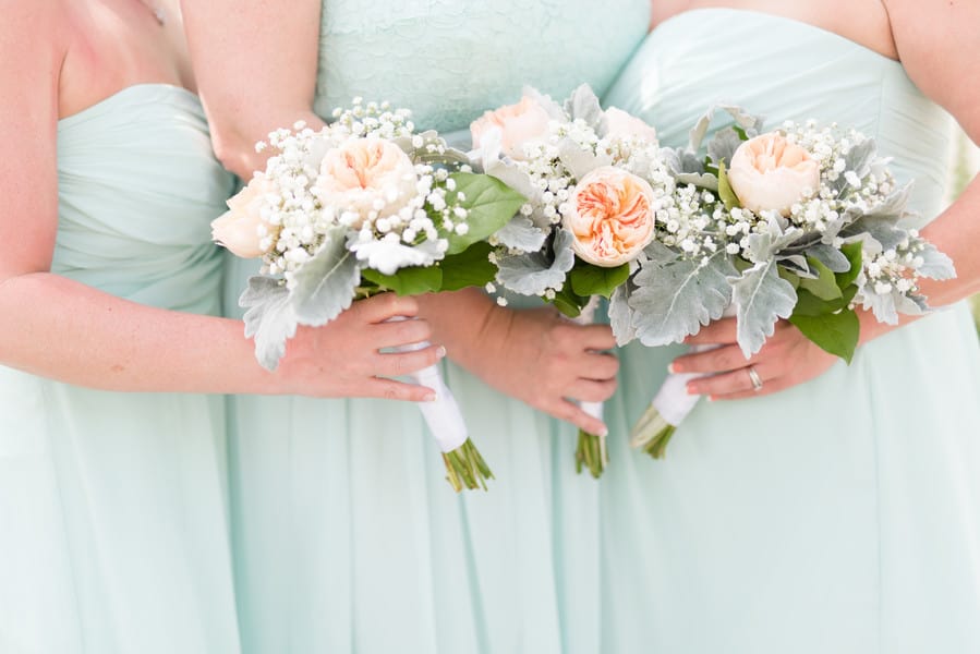 Q: Tell us about your wedding! “I wanted my wedding to have a spring feel to it so I chose mint and peach as my two main colors, and added a rustic feel to it using wood centerpieces, and designs.” Q: Let’s talk wedding decor “As mentioned before, I had a rustic theme to my wedding. I used mason jars and wood for my centerpieces, which were both DIY.” Q: What were the florals like in your wedding? “Such as my wedding being light and airy, I also wanted to use an array of spring floral. Overall, they were my favorite touch in the wedding.” Q: Did you personalize the day in any way? “I had my own photo booth which was DIY by using a curtain as my backdrop, and provided cameras/props for the guests to use. Q: Let’s talk fashion “I searched Pinterest for my initial ‘look’ then went to David’s Bridal to find my dresses. I had my mother in laws pearls for my ‘something borrowed’. Also ordered my shoes off of eBay!” Q: How did you meet? “Bob and I met on an online dating website, but soon found out we had a ton of mutual friends, and grew up in the same area. “Our proposal wasn’t as traditional as most because we had already been together for quite some time, and had a child together. He had been looking for the perfect ring. We were sitting on the couch watching one of our favorite programs, and just asked out of the blue ‘Can I ask you something?’ Of course I said yes…thinking it was going to be nothing. Then he asked the big question and showed me the antique Tacori ring.” Q: What was the most anticipated or special moment of your wedding day? “My most anticipated moment was our first look. This was by far my favorite moment of the day because it gave us a few minutes to share something so personal between just the two of us, and our son before the hustle of the day.” Q: Do you have any advice to share with other couples planning their day? “Do not stress! It will all fall together as it is meant to be. The whole purpose of the day is to join together as one. That WILL happen so anything else, whether planned or not, will fall into place.”Gallery