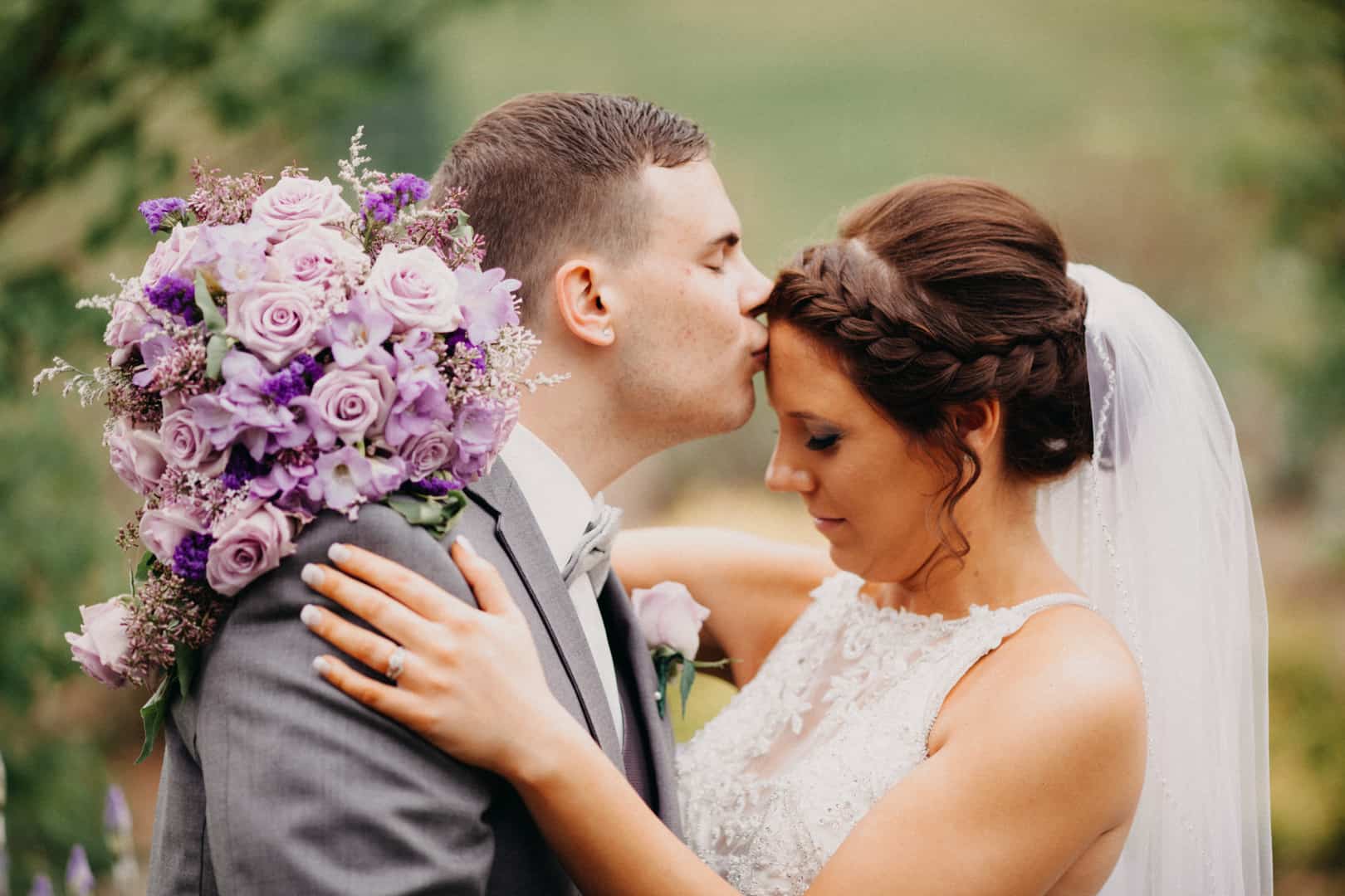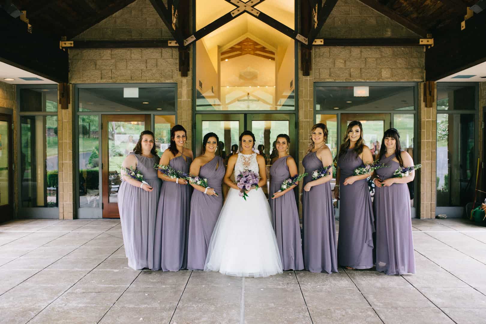 Q: Tell us about your wedding! “My favorite color is purple so we just went from there, I just decorated with many different shades of purple. I basically grew up living on my grandparents farm, so having a barn/rustic wedding just seemed liked the perfect reception venue for us. We got married in the Catholic Church I grew up going to since we are both Catholic.” Q: Let’s talk wedding decor “I think I just used very simple decorations since the barn itself was so beautiful. Our center pieces were wood slabs with a small lantern, a twine wrapped bottle, and a mason jar for the flowers. I wrapped all the bottles with twine and also stained an old pallet that I hung pictures of us growing up on.” Q: What were the florals like in your wedding “The flowers were all different colors of purple. I just showed the florist pictures of what I liked and she put it all together and it turned out very pretty! They were all real flowers.” Q: Did you personalize the day in any way? “The cookie table was made by our family and friends. We had a camper Photobooth so the guests could all take fun pictures and have a copy and we had a scrapbook made of the pictures everyone took. My favorite part of the wedding was when I realized I didn’t have to plan anymore lol! But everything was my favorite part, it all went so perfect and the weather turned out beautiful when it was calling for storms all day.” Q: Let’s talk fashion “My mom and I were out eating one day and just randomly decided to go dress shopping. I had no idea we were going or what I wanted. But when I tried my dress on I knew that it was the one. I had it 1 1/2 years before my wedding! For the bridesmaids dresses I just picked a designer I liked and a color and let all the girls pick the style of dress they liked. The boys wore grey tuxs.” Q: How did you meet? “Brandon messaged me and asked me to go to one of his hockey games so I took my cousin with me and we went. After that we hung out all the time and within a month we were officially “boyfriend and “girlfriend” we dated almost 3 years and on vacation in the Outer Banks NC he proposed to me.. it was perfect. His family was going to get “family pictures done” and that’s when it happened” Q: What was the most anticipated or special moment of your wedding day? “The most special moment was when we were officially married. The most anticipated/nerve wracking part was the church ceremony and making sure we did everything right.. since we are Catholic it was a longer ceremony and a lot to remember to do!” Q: Do you have any advice to share with other couples planning their day? “With wedding planning, don’t stress too much everything will turn out perfect. I was stressed out the entire week of my wedding because the weather was crappy all week and it was calling for 80% storms all day my wedding day. But it turned out perfect and only sprinkled for maybe 1/2 hour.”Gallery