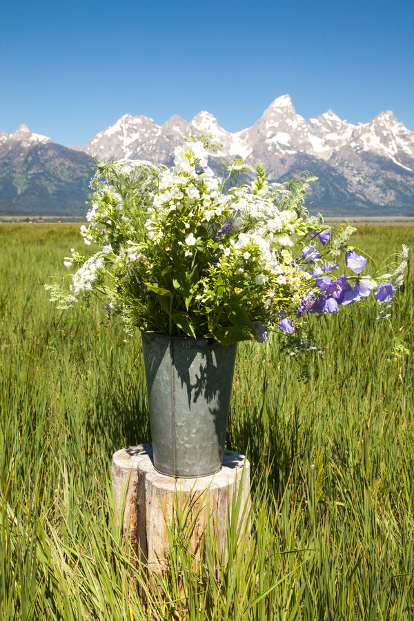 If you are particular for a view and love the great outdoors, today’s Grand Teton National Park wedding with a view is for you! This lovely couple traveled from Colorado for their destination wedding in Wyoming. There is definitely no need for an arbor when you have crystal clear blue sky and mountains as a backdrop! A mother moose and her two calves even made an appearance at this rustic Wyoming wedding. I will leave it to the bride to fill in more details.