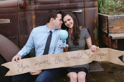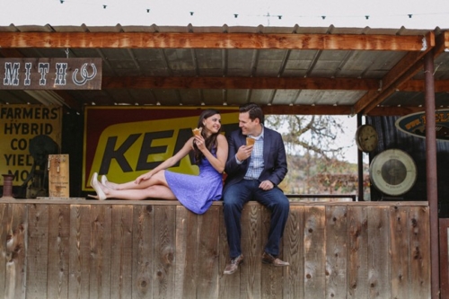 There are no Easter eggs in this engagement shoot, but there is a little bit of ice cream and a little bit of travel — two of my most favorite things! This super cute engagement session was captured by the lovely Allie Lindsey Photography at Peltzer Farms in Temecula, California, and was put together by Little Lover Events. After reading this couples proposal you can really see that they tried to incorporated what they enjoy doing together and let it shine through in photos.The Proposal