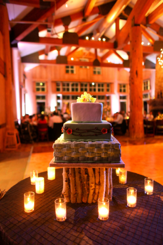 “Deer Valley bakery custom made our cake. We mixed mocha and banana, which created a flavor sensation. The cake was set on top of aspen logs.”