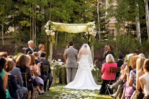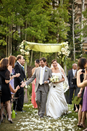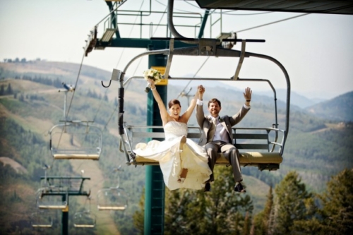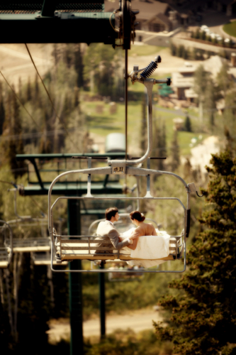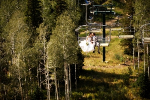 “We decided to do out first look before the ceremony and it was one of the best decisions we made!  It let us enjoy every minute of the reception and  our photographer captured one of the most gorgeous pictures of us at the top of Deer Valley’s mountains, in the chairlift and she also took some beautiful family photos in the greens.”
