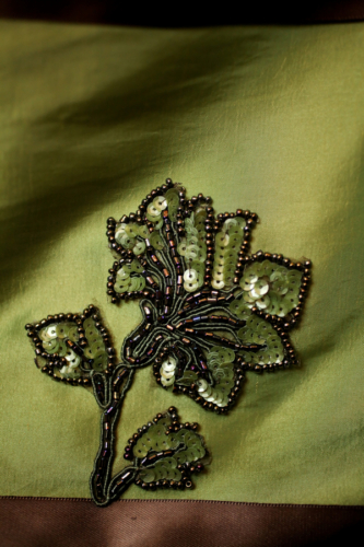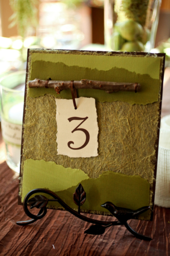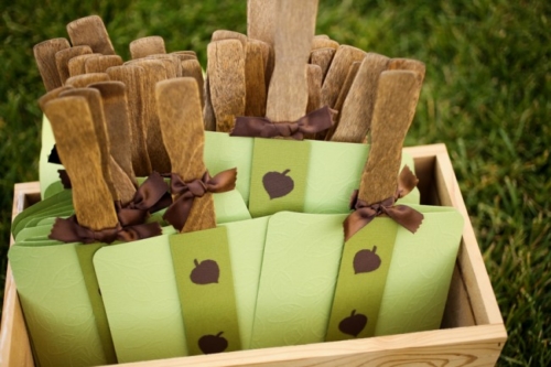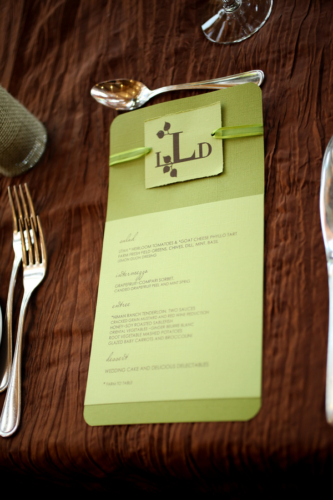 “The wedding programs were handmade by my mother in law with the apple green and brown wedding colors.”