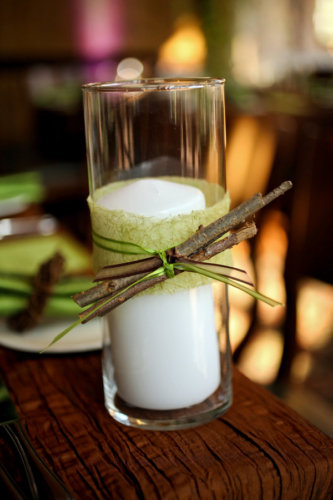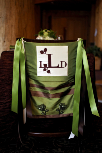 “We wanted the overall look to be simple, modern, organic, elegant and relaxed. We wanted our wedding colors to match the surroundings. The aspen leaves were the inspiration for the green, the barks’ lodges for the brown, and ivory is a very elegant color inspired by wildflowers and my dress.”