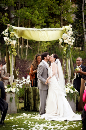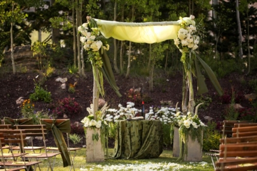 Today’s real wedding features an apple green color scheme, held in a majestic setting at a ski hill in Utah. The bride’s mother is an interior designer and from looking at all of these gorgeous decor photos, you can clearly see that she has the touch. I love when you talent amongst your family or circle of friends can be exploited — in a good way !