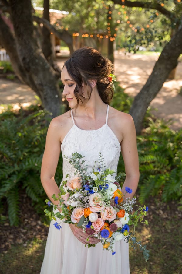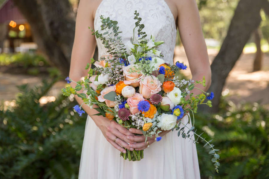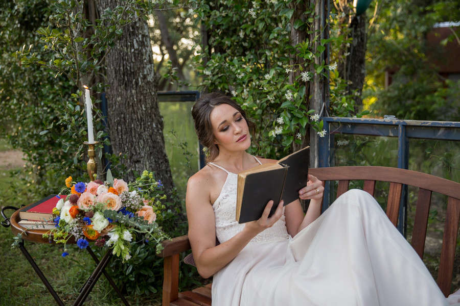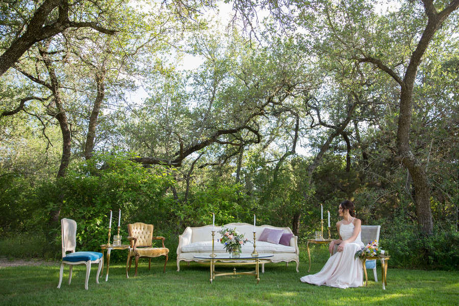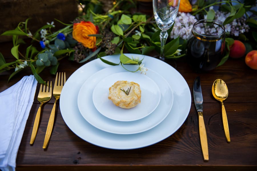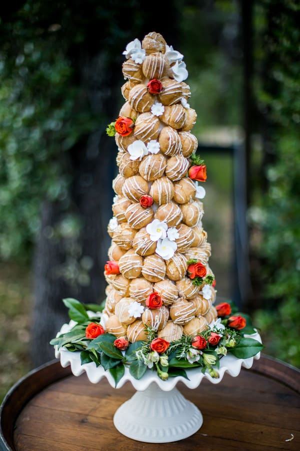 Vendor Remarks: “We wanted to bring a little bit of France to Central Texas! Our inspiration was Monet- In the Garden- 1895 – Giverny. This Painting had all of the colors we love. “The venue’s wildflower fields were fully bloomed with Indian Blankets, bringing in the red and yellow. There were several open green grassy fields. The blue, lavender and wood/gold tones were brought in through accents in design elements. “We wanted all of the great comfort of bread, wine and cheeses. The fruit spread brought in touches of color and freshness. In lieu of a traditional wedding cake we opted for a french delicacy croquembouche.”Gallery