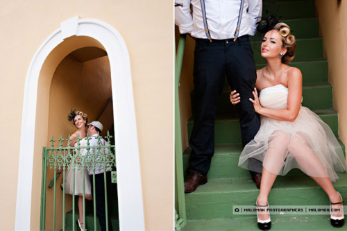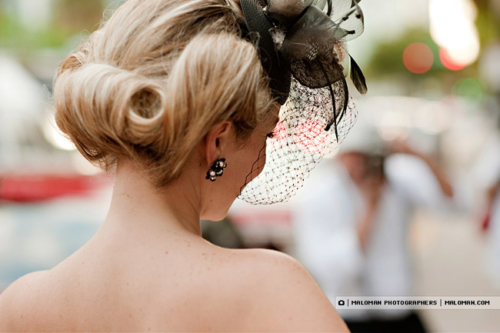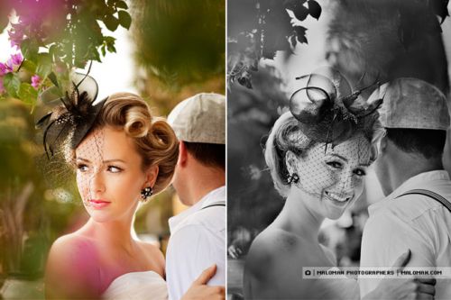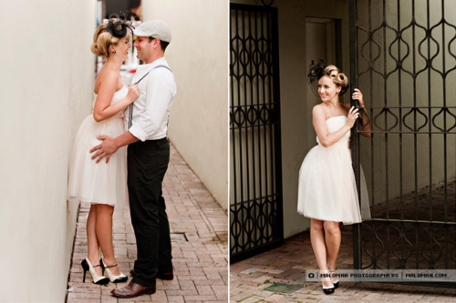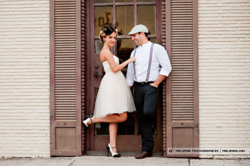 We love how this engagement session, taken by Maloman Photographers, has such a classic vintage feel. Jackie’s birdcage veil and black and white pumps were the perfect accessories! We LOVE Jackie’s hair.Gallery