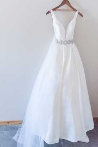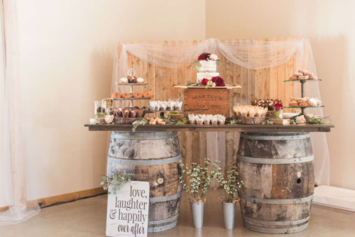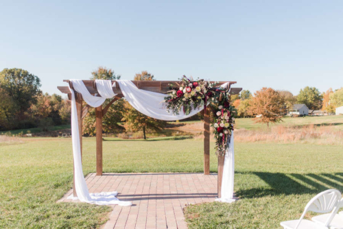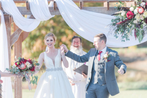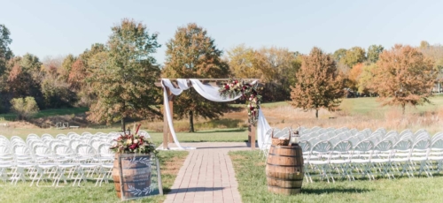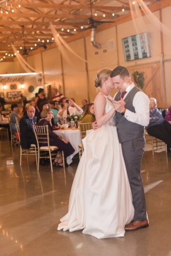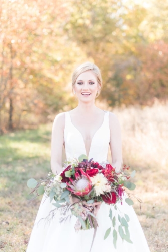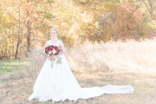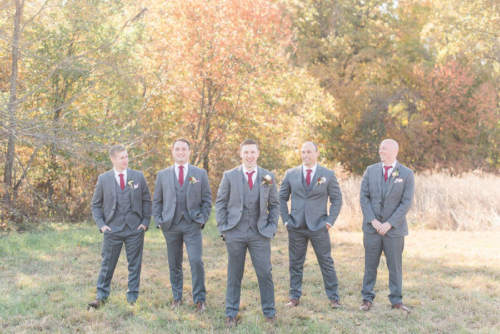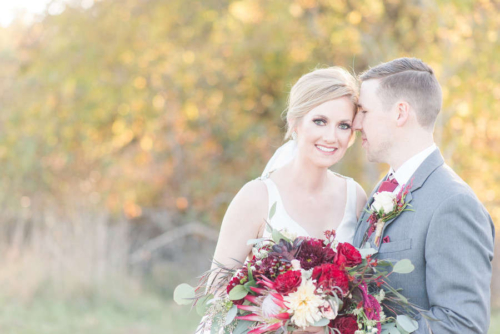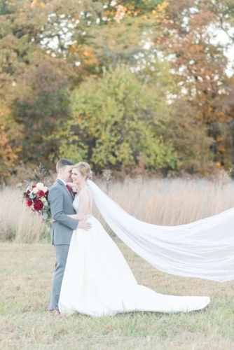 Photographer’s Comments: “The wind blows through the multicolored leaves as they walk hand in hand, smiling at each other. The day they have long been planning is here at last. They are husband and wife, finally. After all of the planning, the decorating, the creating (because Jaclyn DIY-ed quite a bit for their wedding) – they were able to say “I do,” in front of all of their favorite people. I can’t think of a better word than perfect to describe their day. “They didn’t see each other until the ceremony, but while we were taking photos earlier in the day, Kevin asked about Jaclyn. He wanted to make sure she was having a good day and that she was just as excited as he was. 🙂 “Jaclyn had similar questions about Kevin for anyone who may have run into him. These two people are absolutely wonderful together, and their gorgeous October wedding at Milestones Barn was just perfect! The weather was amazing, their wedding party was a blast and their day was beautiful. “Kevin and Jaclyn, we are so unbelievably happy to have been a part of your wedding day! You two are an amazing couple and we wish you all of the best in your marriage. I know it will be incredible! 🙂 Thank you for letting us tell your story. Your day was perfect! The gorgeous reception, your even more gorgeous dress – I mean, it was just everything!”Gallery