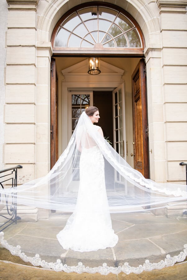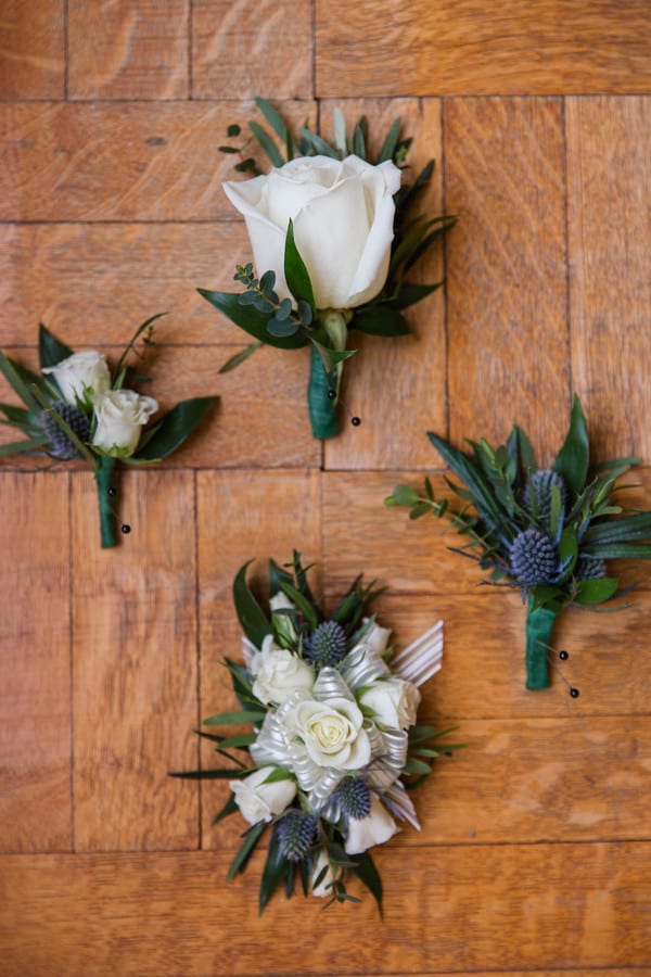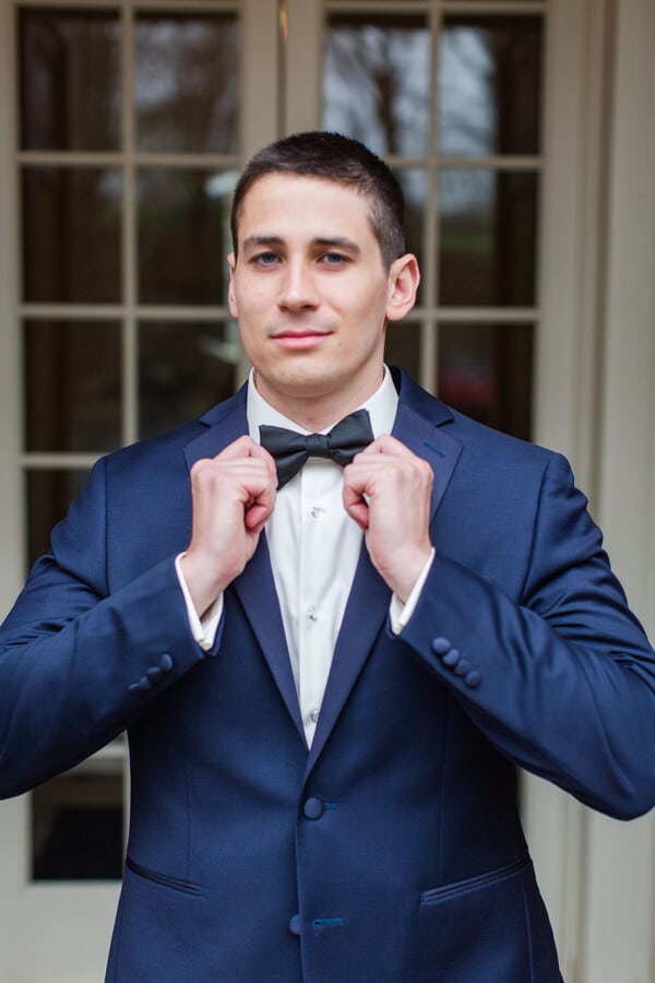 Q1: Tell us about your wedding! “We wanted our wedding to feel elegant and intimate. We choose a venue that was surrounded by natural beauty but also had the classic elements of a french manor home. “We also wanted the venue was intimate enough that we would get to interact with all of our guests. Since Glen Manor House is so natural elegant, we styled with classic ivory and gold detailing. We incorporated light aqua and blues into our invitations and stationary.” Q2: Let’s talk wedding decor “The ceremony space was in a stone covered terrace facing the water. The space was furnished with gold chiavari chair, and the alter was framed with two large flower arrangements in stone urns. “Keeping with the style of the flowers, the arrangements where white flowers and greenery and loose wild design. The beginning of the aisle was framed with white lanterns. “The cocktail tables featured silver and clear candle centerpieces. The dining room tables featured white flowers and greenery and were in a gold hurricane style vases. “The flowers were complimented with ivory linens, marcella gold dinner & salad plates, gold table numbers in gold frames, and gold and silver votive candles. Name cards were printed and held up in wine corks that the bride’s parents collected and made into place card holders. “The sweethearts table featured a gold lace tabletop. “The mantles in the dinning room featured greenery, a lantern, and candles. The mantles in the library and ballroom featured greenery, lanterns, candles and picture frames with pictures of the bride and groom. “Many of the elements incorporated into the wedding were things picked up along the way by Jaclyn and her mother including the vases, lanterns, candles, candle stands and cocktail table centerpieces.” Q3: What were the florals like in your wedding? “All of the florals incorporated in our wedding were designed to look understated yet beautiful. We wanted to highlight the natural beauty of our venue. The florals were mostly white flowers with lots of greenery. “The brides bouquet was featured cream large roses, cream spray roses, ruscus, olive branches, and light gray succulents in a wild and crazy arrangement. “The maids of honor had similar bouquets that also feature, pink astilbe, thistle, gerbera and white hydrangeas. “The mothers of the bride and groom wore corsages with cream spray roses. “The grooms boutonniere was cream rose with greenery and the attendant’s were thistle and greenery. “The alter was framed by two large floral arrangements in stone urns that were in line with the rest of the floral arrangements. The mantles were adorned with greenery and the credenza featured a vase arrangement with white flowers and greenery. “The cake was adorned with greenery, white roses and thistle. “The dining tables featured arrangements with greenery and white flowers in gold vases. “We wanted the florals at the wedding to really bring out the historic and natural beauty of our venue so we spent a lot of time thinking about how to design the arrangements to be timeless as well as modern, and to not overpower the space or feel unnatural. Q4: Did you personalize the day in any way? “Our wedding was planned to include elements that were particularly meaningful to the us. The bride and groom personalized all aspects of the ceremony from selecting the music and readings to writing their own vows. “The minister, harpist, soloist, reader, attendants, flower girl and ring bearer were all relatives or close friends of the bride and groom. “The wedding party was small with the bride and groom each having just two attendance reflecting the intimacy of the day and in keeping with the venue. “The guitarist during cocktail hour was a close childhood friend of the bride. About 1/3 of our guests were involved in the wedding in some manor which we wanted to do to incorporate our family and friends into the wedding.The ceremony was very special to us. “Glen Manor House was the perfect location for a beautiful and intimate ceremony. We were hoping for an outdoor ceremony on the lawn overlooking the river, but with drizzling rain, we moved the ceremony to the portico/terrace with its stunning architectural features that framed the wedding party and complimented the bride’s dress and floral arrangements. “We personalized all aspects of the ceremony from selecting the music and readings to writing their own vows. The minister, harpist, soloist, reader, attendants, flower girl and ring bearer were all relatives or close friends of the bride and groom. Another special element we included was handing out Mardi Gras beads during the dancing portion of the evening. Jaclyn and Nate had attended 8 Mardi Gras’ while living in New Orleans and had lots of beads to share so once dancing began the beads were handed out to guests to wear. Q5: Let’s talk fashion. How did you both choose your wedding day look? Describe the looks in detail. A5: Early on in my engagement I feel in love with designs by Maggie Sottero (she has three lines including Sottero and Midgley). I loved the elegance, beautiful open backs and detailing of her designs. I choose to go only to bridal salons that had her dresses. When I tried on my wedding dress (Clementine by Sottero & Midgley) I quickly fell in love with it. The ivory dress was accented with bold metallic embroidered gold lace appliques and Swarovski crystals adorning the v-neck and keyhole back. Since the dress was fitted, I decided to pair it with a cathedral veil was that was adorned with matching gold lace. I wore my hair up to showcase the beautiful keyhole back of the dress. My makeup was designed to highlight my eyes. To finish my look, I wore nude Kate Spade Wedges, an aqua opal ring borrowed from my mother (my something blue/borrowed/old) and Effy earrings gifted from the groom as my wedding present. The groom’s wore a navy tux purchased from Men’s Wearhouse. We choose to ha