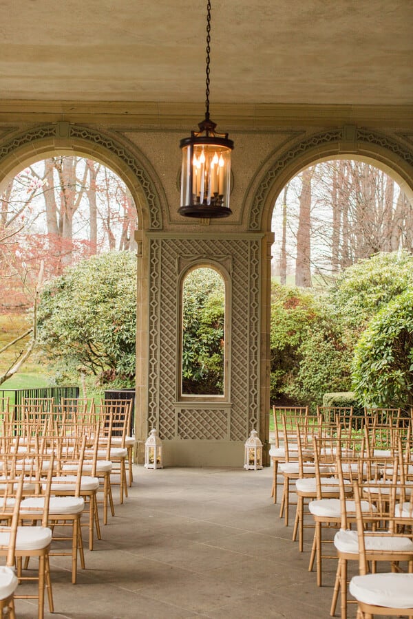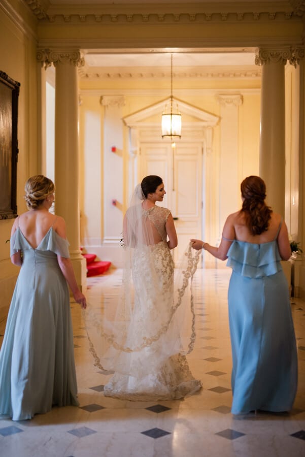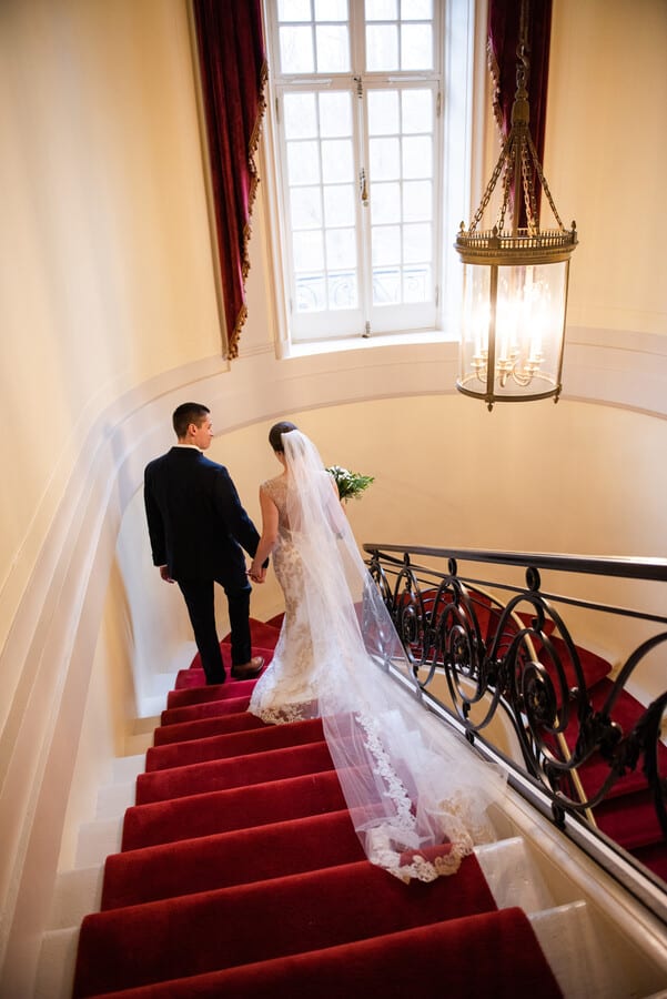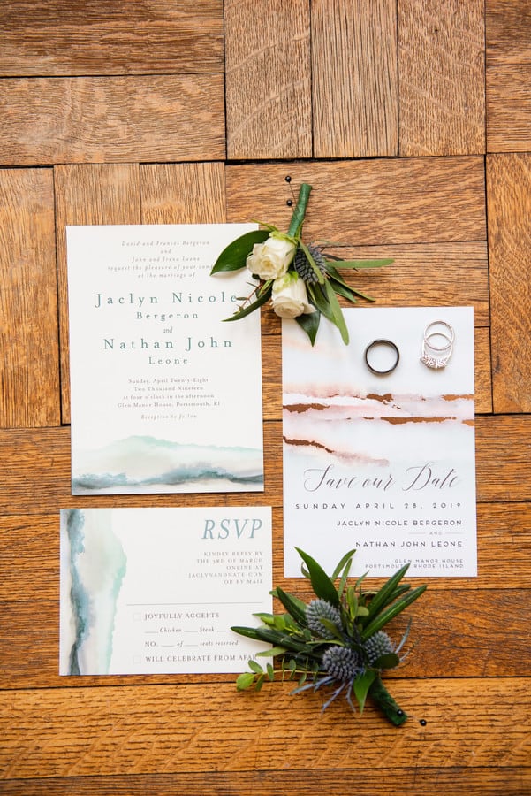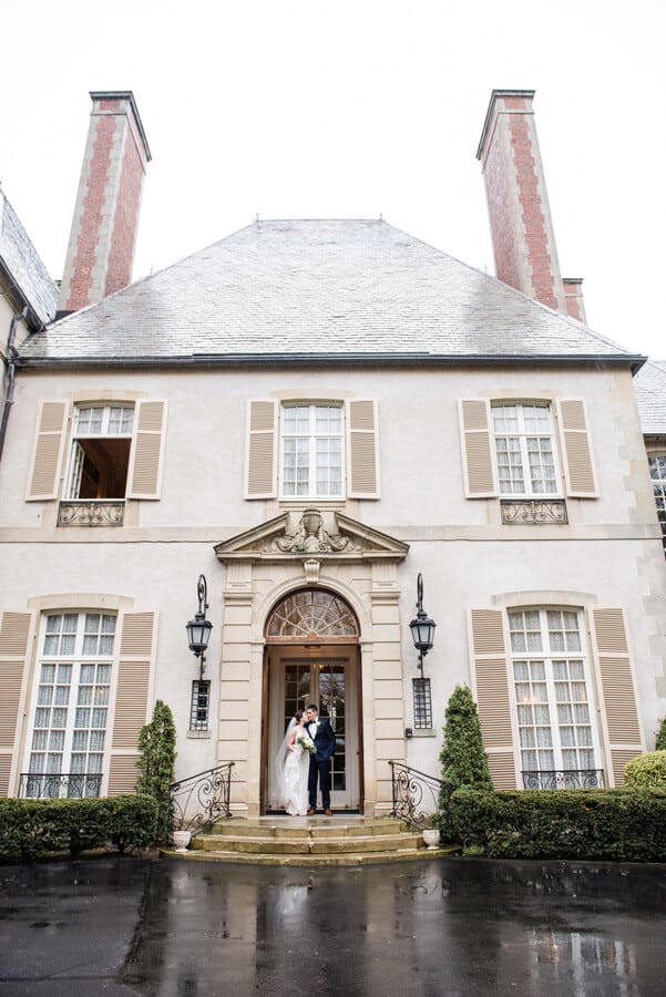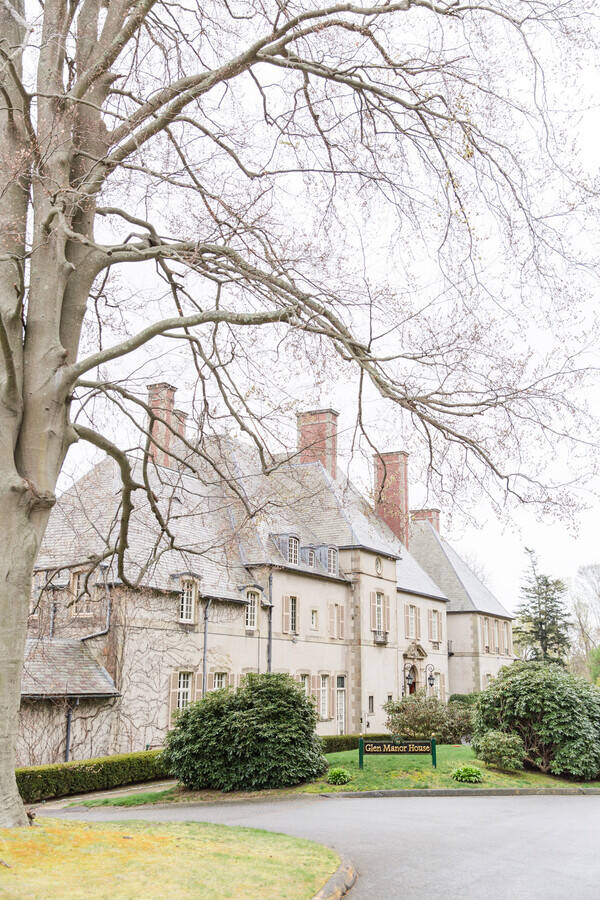 Beautiful wedding day in Rhode Island — even in the rain! Glen Manor House was the perfect location for a beautiful and intimate ceremony. The couple were hoping for an outdoor ceremony on the lawn overlooking the river, but with drizzling rain, they moved the ceremony to the portico/terrace with its stunning architectural features that framed the wedding party and highlighted the bride’s dress and floral arrangements.About This Wedding