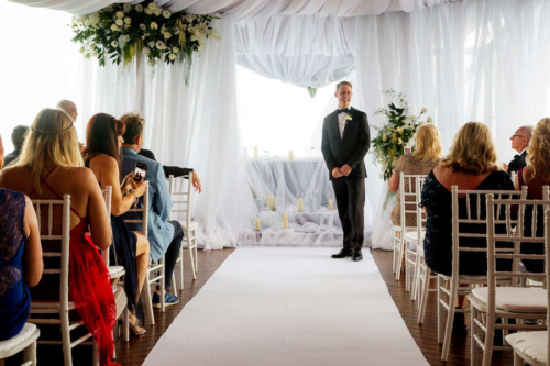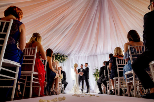 Photographer’s Comments: “Every wedding couple is different and deserves a unique wedding experience. Many people dream for years about how their wedding day will be. They think about decorations they would like to use as well as the rituals they would like to include to make their wedding unique. “This creative couple not only headed off to a foreign country for their wedding but also got inventive with their decorations. Check out the photos below to see what they did differently. THE COUPLE “Jamie and Christian first met in high school at a party and 11 years later they are still together! “A love of travel is one of the passions that brought them two closer and now they have visited a bunch of countries together. They decided to have a destination wedding because they wanted to share the joy of travel with their closest friends and family. DRESSING UP THE VENUE “In Jamie and Christian’s unique wedding, as you’ll see, the venue looks completely different. By hanging lush, white fabric all over, they completely transformed the venue, giving it an ethereal, fairytale-esque feel. “Delicate clear dishes with gold accents along with gold flatware and an abundance of white roses graced the tables. Add to that the warm glow of candlelight and it was truly a magical atmosphere. THE AFTER PARTY “Jamie and Christian and their guests sure know how to tear up the dance floor. As you can see from the photos a great time was had by all. People were dancing, laughing, the smiles of the happy couple lit up the room. It was a beautiful thing to witness indeed.”Gallery