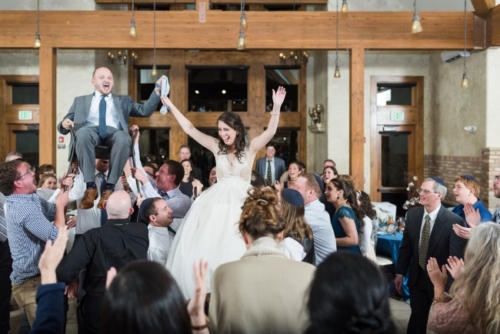“The reception was lively as the traditions didn’t stop there! Justin and Jennifer’s first wedding meal began with the blessing over the challah, an elaborately (and delicious) braided bread. And, of course, no Jewish Wedding would be complete without the hora, or chair dance. Jennifer and Dustin were all smiles as they were hoisted in the air, their friends and family dancing in ecstatic circles around them.”
