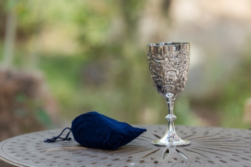 “Jennifer quietly approaches Dustin from behind, her lace dress gliding soundlessly along the cobblestones behind her. Dustin closes his eyes at the sound of Jennifer’s footsteps before turning around and getting his first look at his bride-to-be. This couple is all smiles, their eyes portraying all the emotions they need before intimately coming nose to nose.”