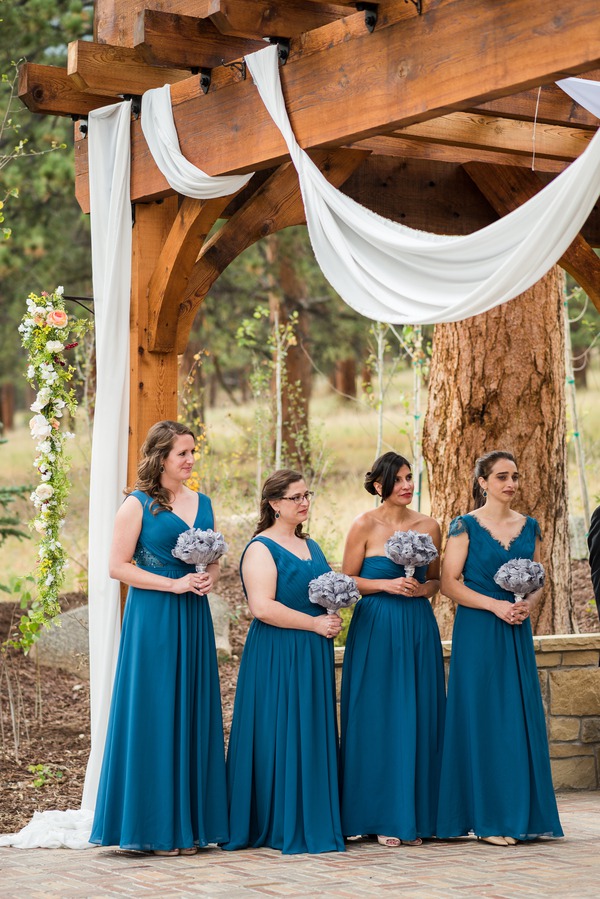 “The groomsman all sported navy yarmulke’s, the couple were married under a traditional chuppah, and there wasn’t a dry eye as Jennifer circled Dustin seven times, symbolically creating a new family circle. After sealing their marriage with a kiss, Dustin and Jennifer broke the glass together as cheers of mazel tov erupted throughout the crowd. This family was ready to celebrate!