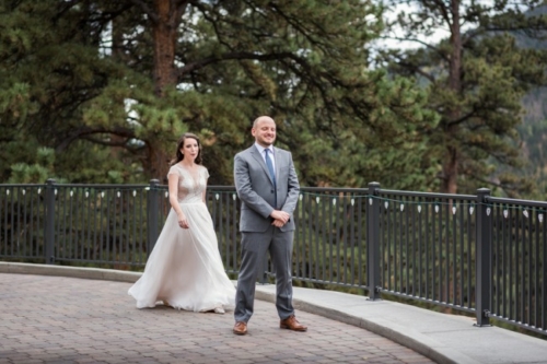 Photographer’s Remarks: “Dustin awaits his bride, Jennifer, on a lookout settled amongst the mountains surrounding Della Terra Mountain Chateau. It is a fall day in September and Dustin looks out at his surrounding’s, taking in the abundance of green tree’s – few sprinkled throughout with gold.
