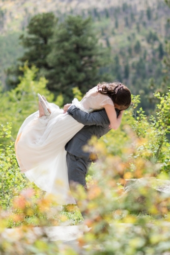 “Now, it is no secret that here at From the Hip Photo we love a good fall wedding. We are always on board with a lush and wooded backdrop! Jennifer’s dress was woven with delicate lace and complimented Dustin’s grey tuxedo and blue tie perfectly. This couple proved to be the perfect newlyweds as they posed and frolicked through the forest. We were so impressed as Dustin adapted to the role of loving husband right before our eyes. He picked Jennifer up and twirled her around, even giving her a piggyback ride at one point – the love was evident!