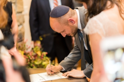 Below is a picture of the signing of the ketubah. We wrote a followup article for this wedding that explains all about the ketubah!