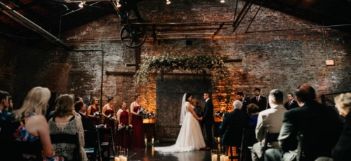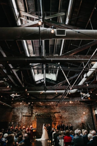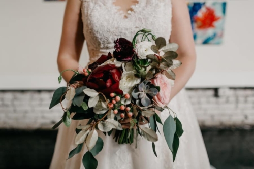 Photographer’s Comments: “This wedding was very near and dear to my heart because the bride, Jennifer, was the fourth Morsberger sister to be married and the third sister whose wedding I photographed. “I am so in love with this family. I knew Jennifer’s groom, Andrew, had to be just as funny and laidback. When I met Jennifer and Andrew for their engagement session, they suggested we walk around the Atlanta Beltline and Cabbagetown to check out all the cool graffiti. They are the quintessential hip couple and their wedding reflected just that! “Their venue was located at the King Plow Arts Center in the heart of Atlanta. The moody greenery and floral decor chosen contrasted perfectly with the urban industrial vibe of the ceremony space. It felt almost as though a secret garden was growing inside the warehouse. “Jennifer was accompanied during the day by her six sisters who were all bridesmaids. Her maids wore a beautiful cabernet color in all different styles to suit each individual sister’s personality. “During the ceremony, Jennifer and Andrew’s son, James, made a sweet guest appearance. His face lit up at seeing his parents at the alter. “Soon after the ceremony ended, guests began dancing. Even before dinner was served! This really set the tone for the rest of the evening and the Shimmer Band kept the energy going all night! “Jennifer and Andrew ended the night with a sparkler send-off.”About This Wedding