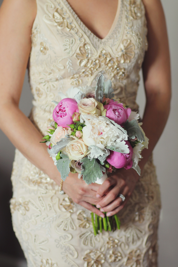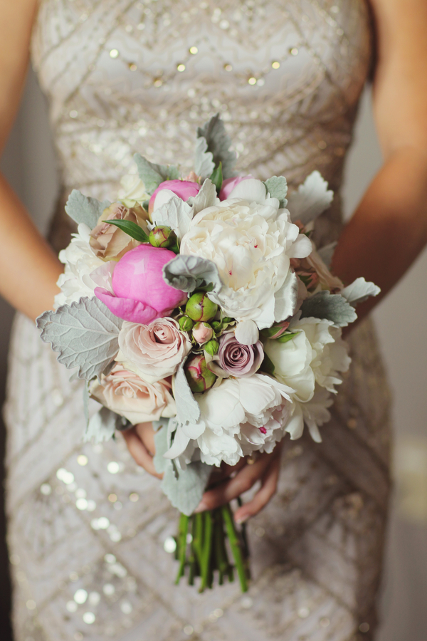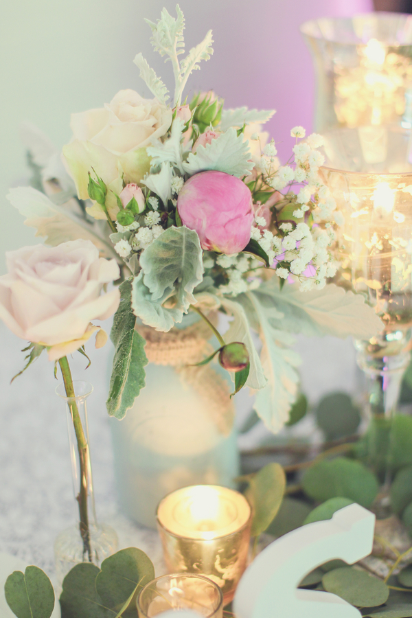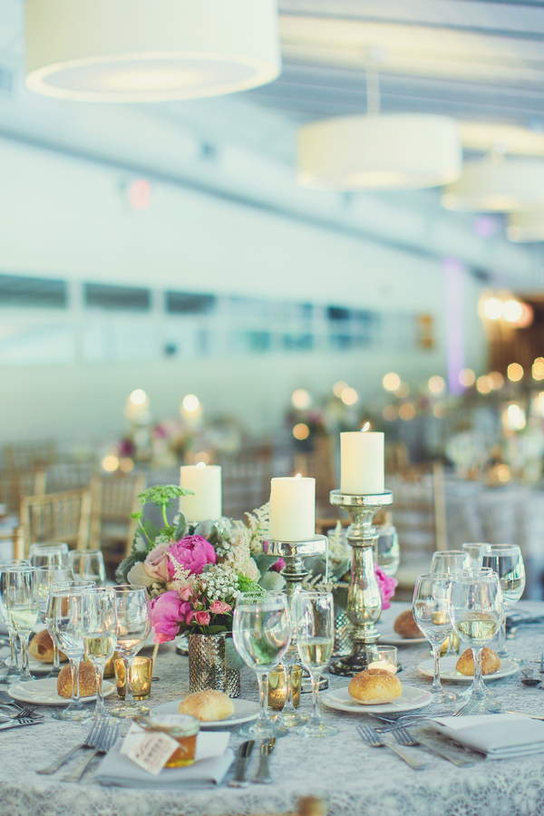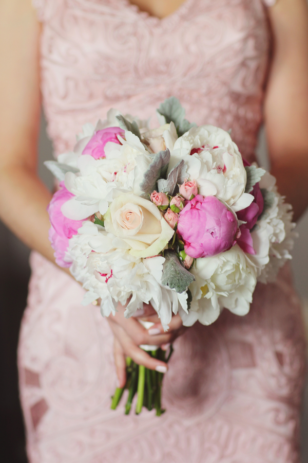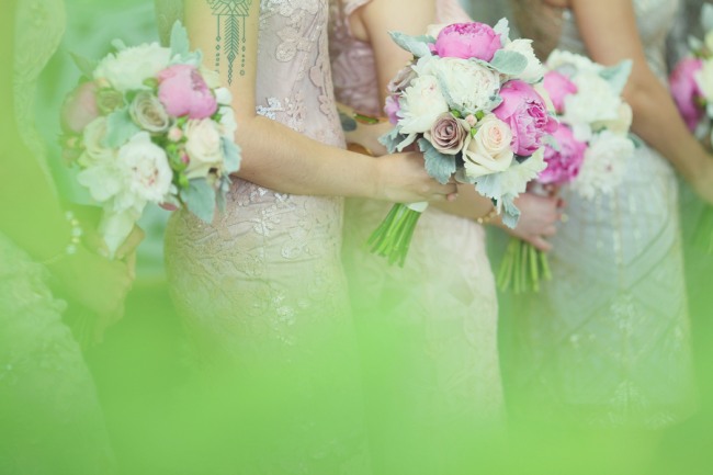 Today’s wedding is all about mismatched pastel bridesmaids dresses done to perfection and gorgeous bouquets to go along with them. Daniel and Jennifer got married at the beautiful Stonehouse at Stirling Ridge in New Jersey. Hints of pinks, flecks of gold, a neat paper lantern chandelier, gorgeous center pieces with ivory roses, and vintage candle holders make this wedding blog post one of those that you have to scroll up and down a few times. It is just that good!