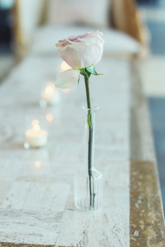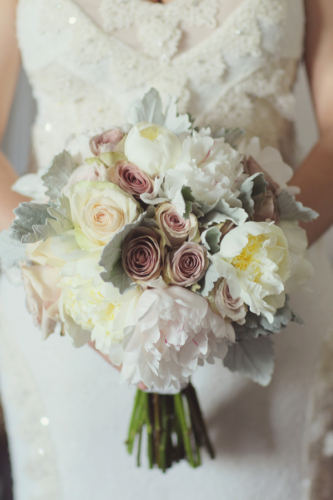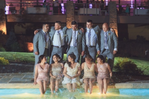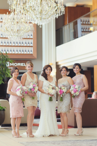 Today’s wedding is all about mismatched pastel bridesmaids dresses done to perfection and gorgeous bouquets to go along with them. Daniel and Jennifer got married at the beautiful Stonehouse at Stirling Ridge in New Jersey. Hints of pinks, flecks of gold, a neat paper lantern chandelier, gorgeous center pieces with ivory roses, and vintage candle holders make this wedding blog post one of those that you have to scroll up and down a few times. It is just that good!