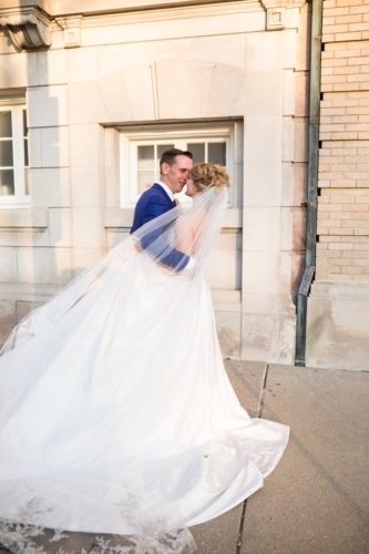 My veil was my favorite part!! I wanted a cathedral length veil with lots of detail on the train. I found one from a Bridal Consignment store while with a friend who was trying on dresses for her wedding. The veil has gold and silver aplique and stitching throughout and sequins for a bit of shimmer. It was such a perfect match for the dress – and definitely something I will look forward to passing down as a family heirloom.”