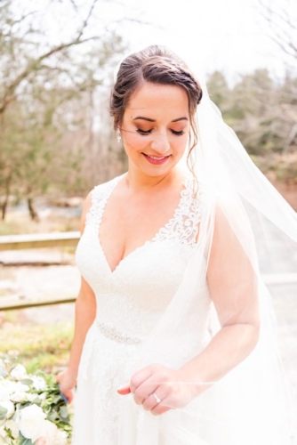 A6: We were both in different Bible studies at the same church. Our groups frequently met up. One night we all got together for a “Fiesta Dinner” at my house (Jenny), and it was the first time we were both at a meet up together. For John Andrew, it was an instant attraction (and I’m so glad it was!) So the next day he messaged me on Facebook and asked me out. (Yes, Facebook messenger). We went on one date and that was it! We dated for about 15 months before he popped the question!There’s a spot near our house that we like to walk on the greenway by a river. It was actually the first place we said “I love you”. So went back down there for a walk and we got to the spot where we had said it, and he handed me his Bible (like the did the first time) but asked me to read a passage from 1 Cor that we had read before. I opened up his Bible and the ring was taped to a Post-it note inside the Bible. He got down on one knee there (in the river) and I said “Yes!”