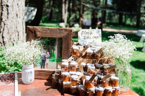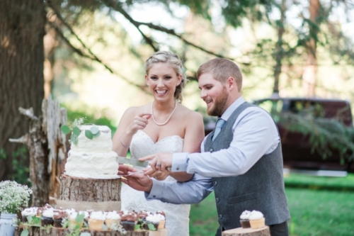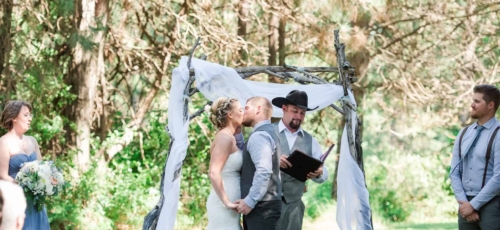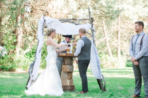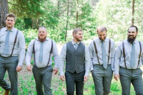 Some wonderful rustic woodsy goodness for today’s featured wedding: Cowboy boots, groomsmen in suspenders, and even beer during the wedding ceremony. What could be better?