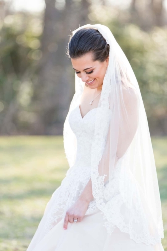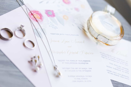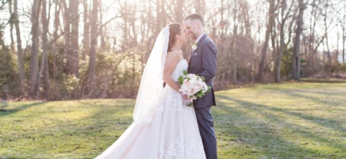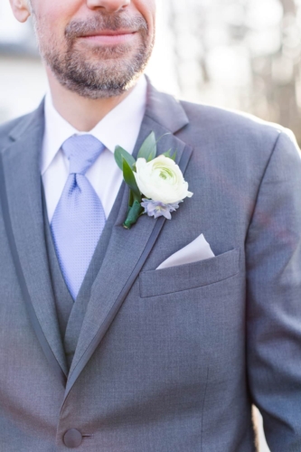 Q: Tell us about your wedding “We tried to incorporate little spring elements as our wedding was early spring. We had wildflower seed paper in the shapes of birds as our favors, and we had little rabbits holding Easter eggs at our head table since the following day was Easter. We also both have a science background – I teach chemistry and Chris works in environmental consulting – and so our table numbers were elements from the periodic table. Cornflower blue was main color in our color palette.” Q: Let’s talk wedding decor “My favorite DIY decor item was the seating chart. I used a picture frame and clothespins to hang guest names and table numbers, and left a sign with an Instapix camera instructing guests to take their name and replace it with a selfie. We got some really cute pictures from that!” Q: What were the florals like in your wedding? “My friend, Rachael Kenney, did the flowers for us. She did an amazing job and featured a lot of ranunculus in the bouquets. She also incorporated some blue hydrangea into the vases and Chris’s boutonniere in memory of Chris’s mom – it was her favorite flower. Rachael also added some flowers to our wedding cake. I had just given her a couple pictures of things I liked and let her do her own thing. I love how they all turned out!” Q: Did you personalize the day in any way? “We had a craft beer station at the ceremony with beer from our favorite local brewery, Jughandle! My favorite part was the band – Brian Kirk and the Jirks. I chose the wedding date around when they were available…they were amazing!” Q: Let’s talk fashion “My aunt owns Antoinette Rose Bridal, so I went to her store to try on a variety of dresses. I originally thought that I wanted a fit and flare dress, but they had me try the Morilee 2674 ballgown and I couldn’t imagine wearing anything else. I wish I could wear it every day! Chris knew that he wanted to wear a gray tux, and we coordinated the vests and ties to match the bridesmaids in cornflower blue. The bridesmaids chose their own styles; all of them were Bill Levkoff chiffon in cornflower blue.” Q: How did you meet? “We met at work, doing environmental consulting. Chris proposed on a snowy day in January at our new home (we weren’t living in the house yet). We had dinner plans and he insisted on stopping by the house first to show me some paint samples for the master bedroom that he had picked out. We went to see the room and he had painted reasons why he loves me on the wall. He then told me it wasn’t a proposal, just a nice thing he wanted to do to show me how much he loved me. He told me to go look out the window, and down on the deck in the snow it said, ‘Marry me?’. I turned around to find him down on one knee with a ring!” Q: What was the most anticipated or special moment of your wedding day? “It was so special having so many of our family members and close friends all together to celebrate with us. I also loved dancing with my dad – he had kept our song a secret and surprised me halfway through the dance by having the band break in to “Drive My Car” by The Beatles, which is a song that reminds me of my childhood with him. The food and the band were amazing. Everything went off without a hitch and I can’t imagine a more perfect day!” Q: Do you have any wedding planning or marriage advice that you’d like to share with other couples planning their day? “Enjoy it! Don’t stress about the little things, it’s not worth it. The day flies by. Also, I’m really glad we decided to hire a videographer (Color Room Films). It’s wonderful having a video to watch to relive the magic.”Gallery